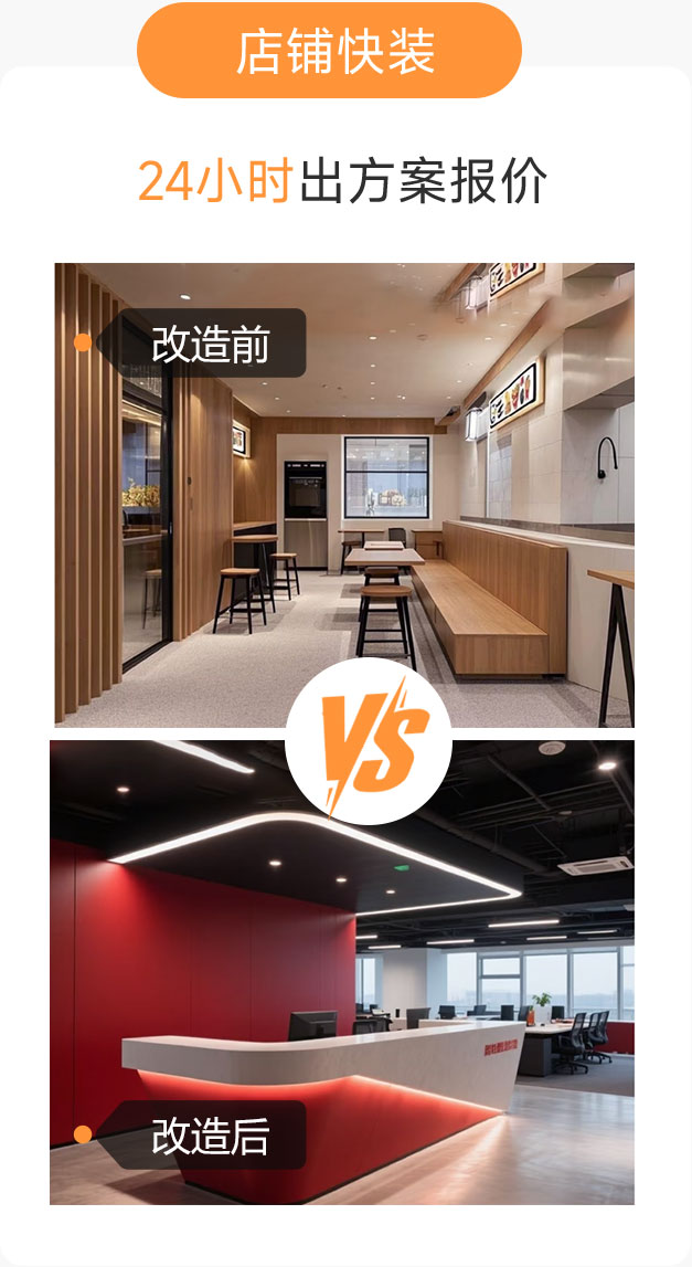 对于商家而言,时间就是成本。我们提供“商铺极速快装”服务,通过标准化流程与专业施工团队,在保证质量的前提下最大限度压缩工期,帮您早日开业,早日回笼资金。