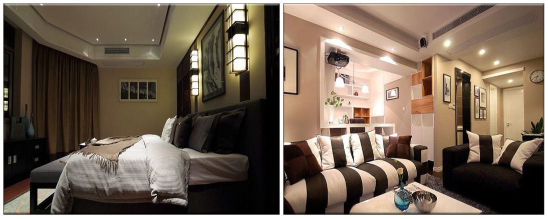 淡黄色的灯光会紧张黑色家装带来的阴冷质感。从而变得温馨和浪漫。