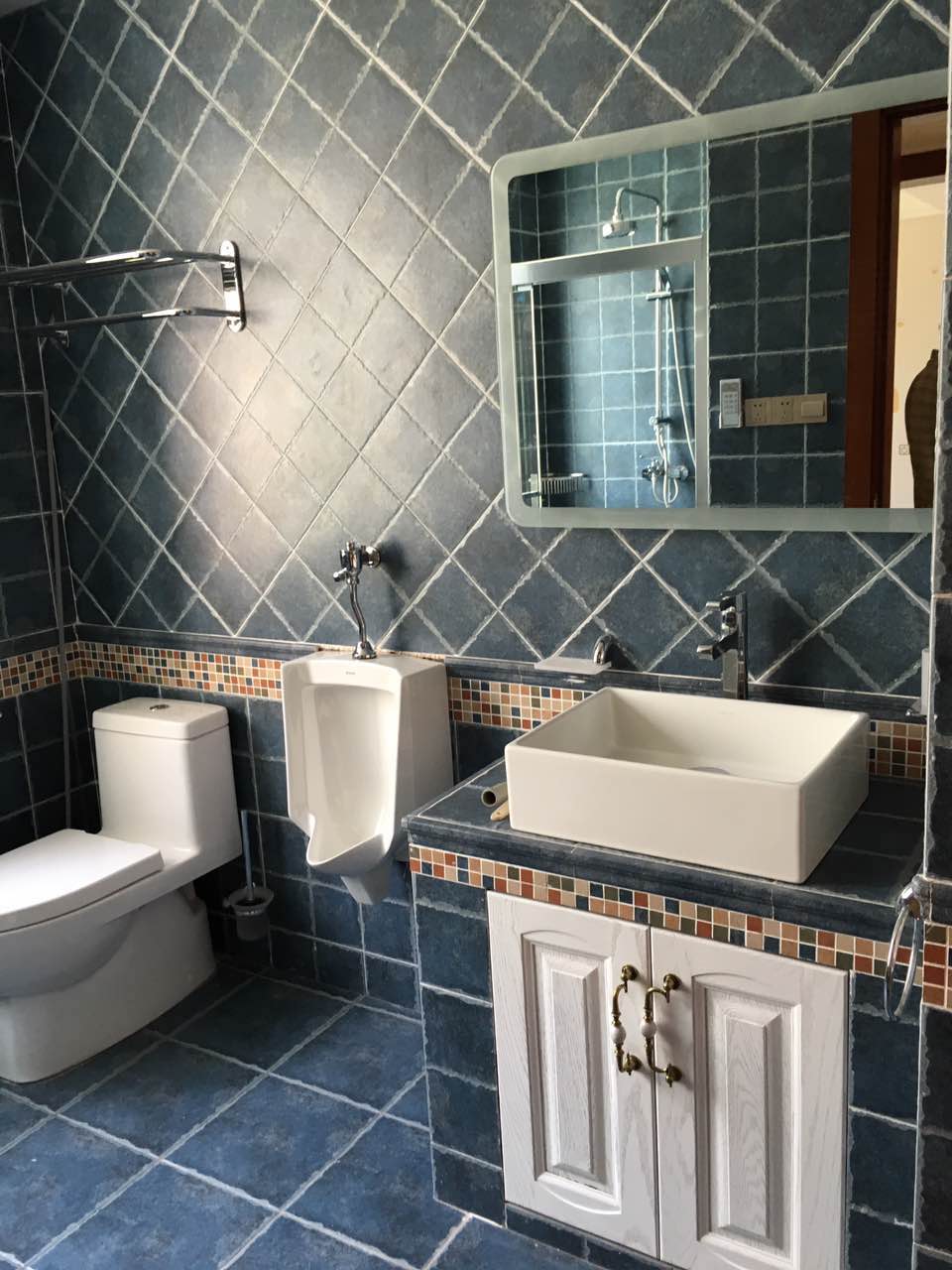 卫生间瓷砖有腰线和花砖的要事先想好,将来其他东西装好了不要挡住或冲突。瓷砖添缝剂用色粉配颜色的话最好先调试一点看一下,再决定用量,否则不是太浅就是太深。