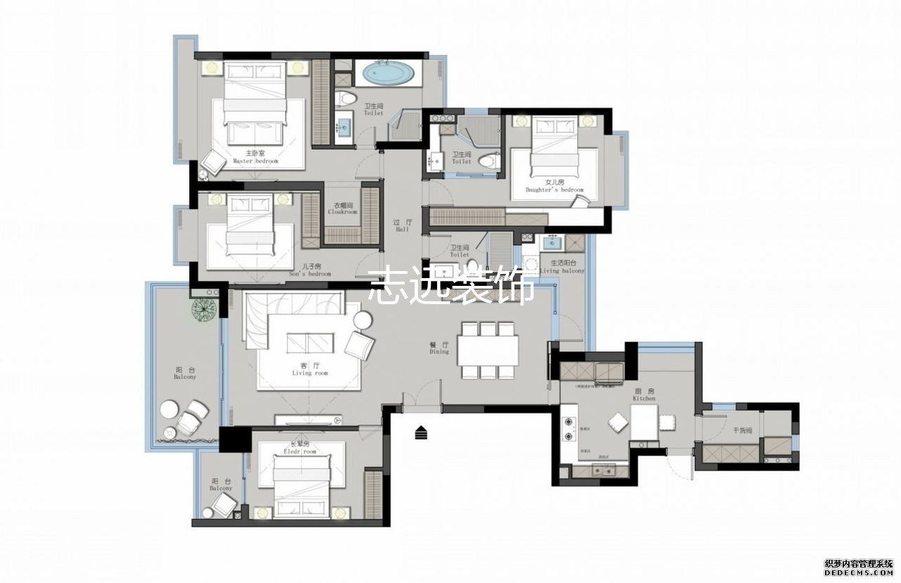 客厅:空间开敞、内外通透,在空间平面设计中追求不受传统对称限制。自由开放,力求创造出时代精神,独具新意的装饰,设计简单、通俗、清新,更接近人们生活。