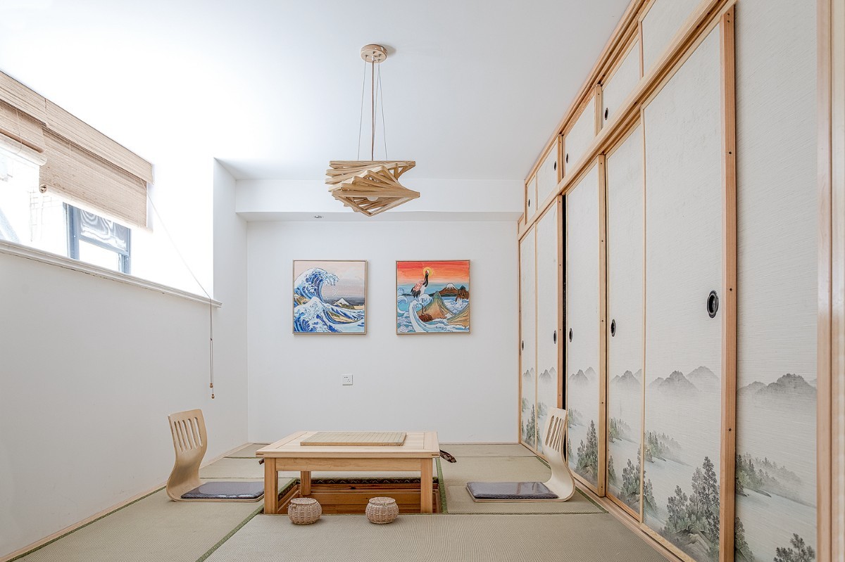 日式的壁画,简单的软装点缀,整体上清新淡雅,干净清爽。