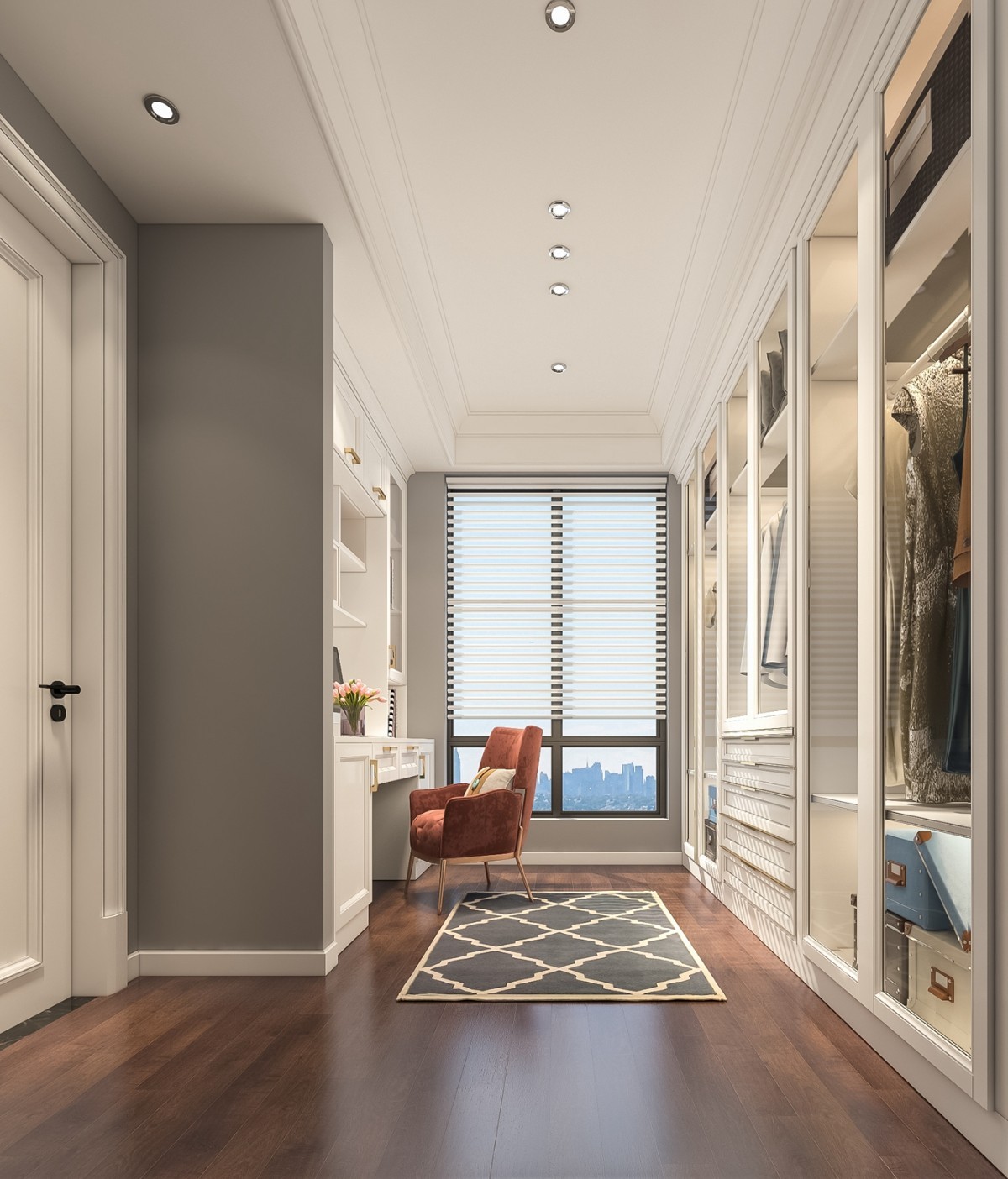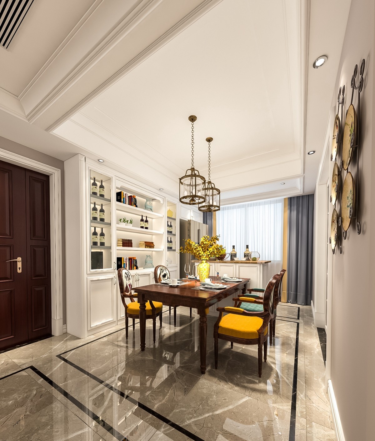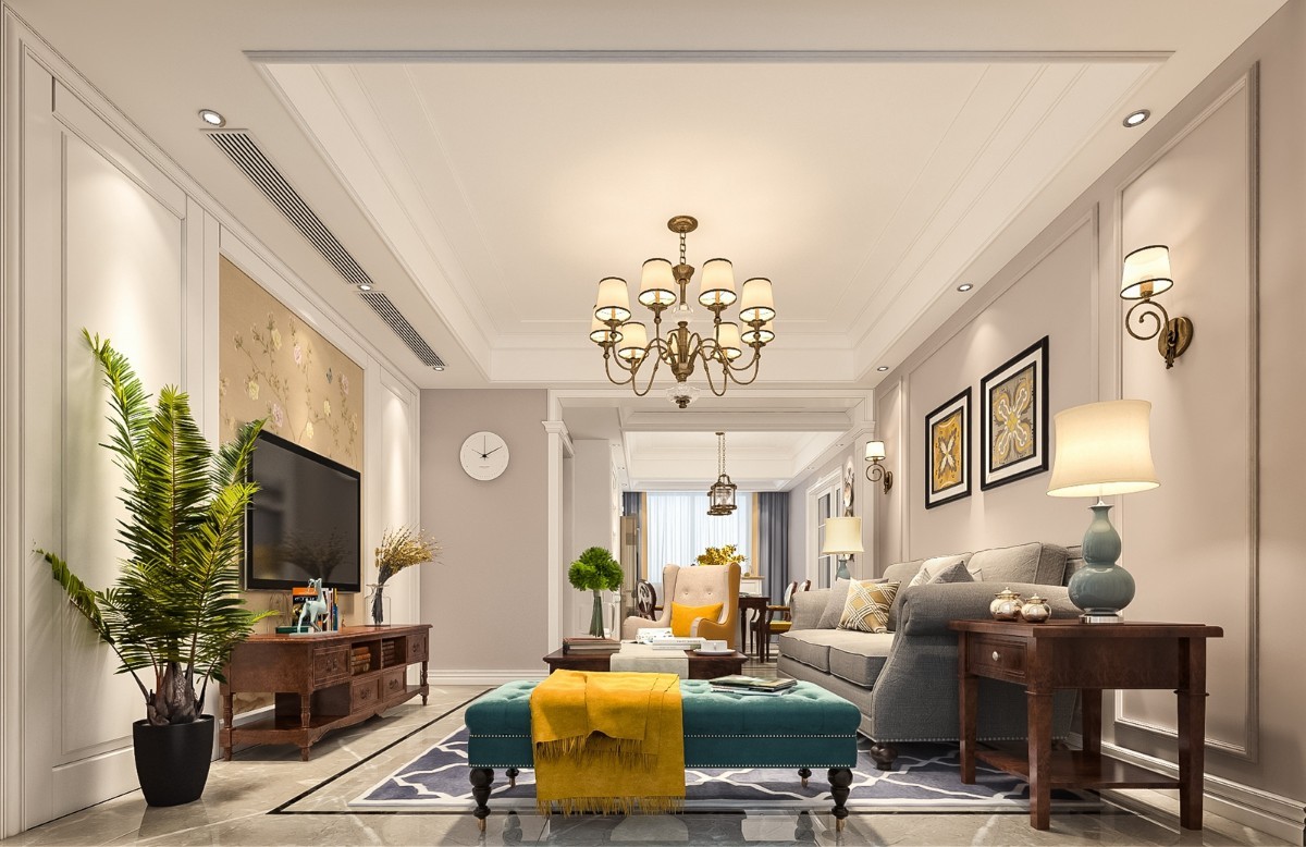 而本次设计跳出了美式风格的传统特点,在硬装上没有过分的做一些修饰,简单干净。