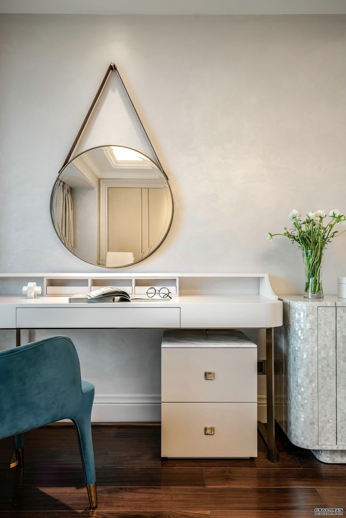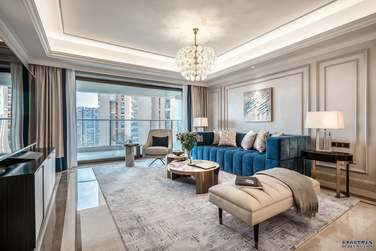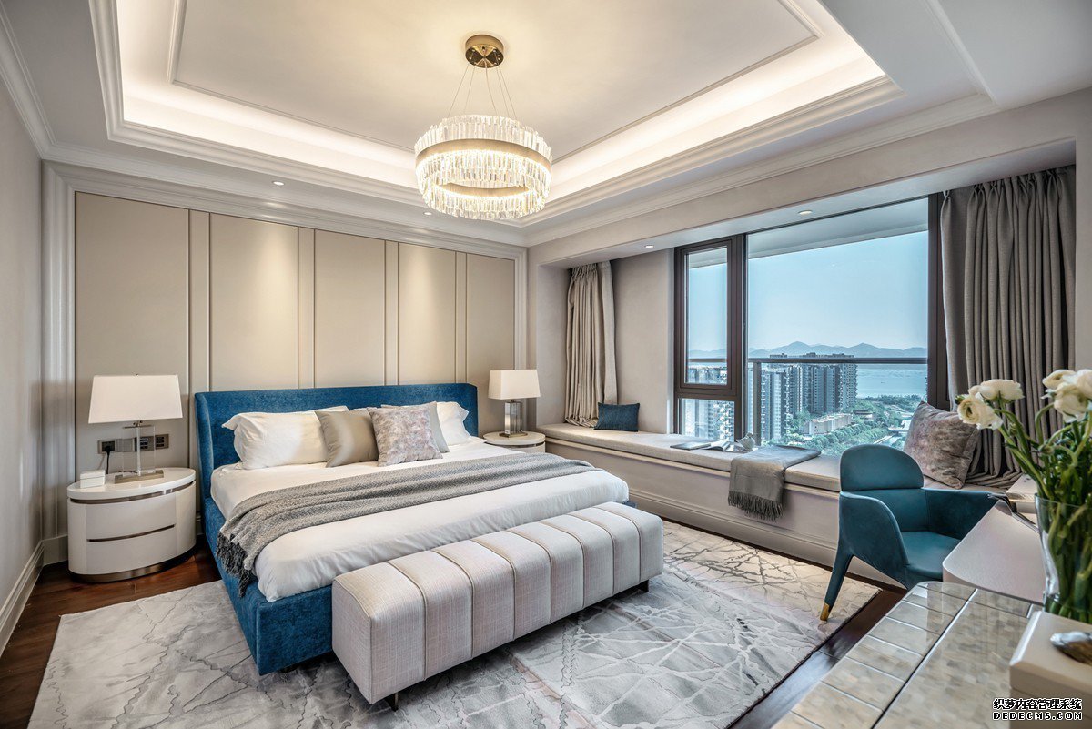 本案是简美风格布局开阔明亮,所有的线条简约而规整,克制且必须。灰白的低调让渡出更多的视觉焦点以承载孔雀蓝的高贵,诉说着一种精致清雅的存在。私宅设计中尤其要考虑到居住者的使用需求,用心去衡度每一个细节、元素在空间中的配比。对于空间的美而言,创造出居住的氛围,更多地还是需要由居住者去感受和传递……