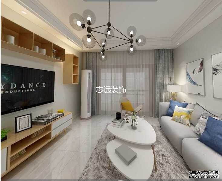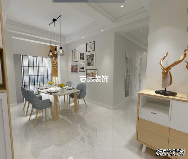 本案例设计中室内的顶、墙、地三个面,完全不用纹样和图案装饰,只用线条、色块来区分点缀。
