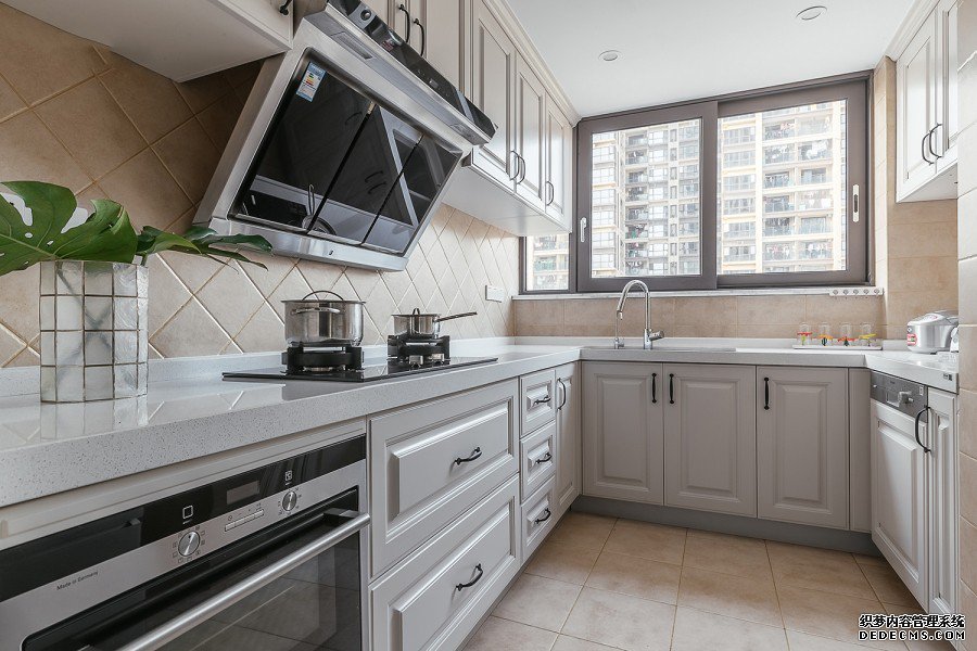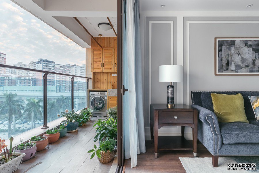 客厅的设计以浅色奶咖系为主色调,极为简练的线条结构经过严谨的比例调整,化成点线面的构成,白色烤漆饰面板、奶咖色墙漆 、整面大理石,经典的家具,别致的小饰品,都无不体现了一种随意的生活方式。窗台处卡