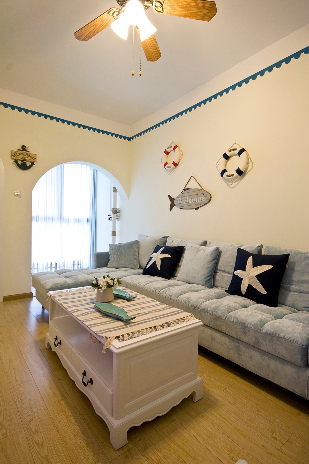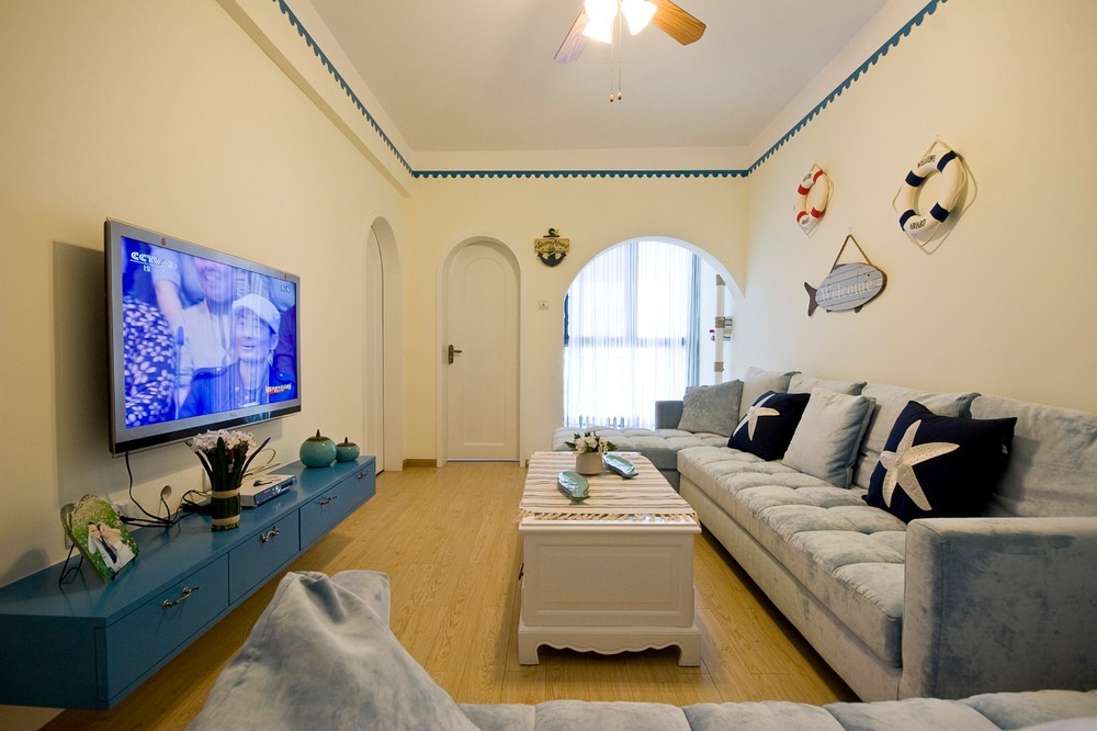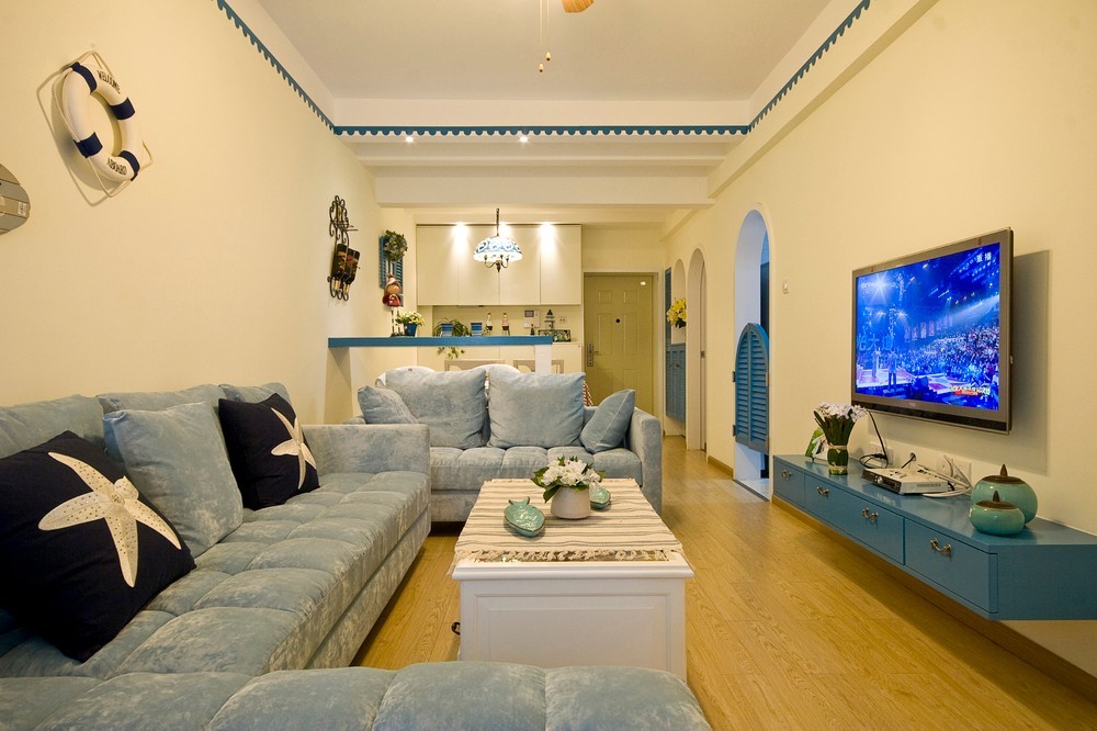 设计说明:将现代和传统元素结合在一起,以现代人的审美打造古典韵味的事物,让改良后的地中海风格体现出幽雅舒适的生活态度。 本案我们尝试用一种新的语法来重新诠释地中海风格,提炼地中海传统建筑精神以及意念中的精去除表象,直达内里,并充分考虑自然和传统原重点的因素,以唤醒人们深藏的场所记忆和文化认同感。在整个装饰上,到处都充满着和谐的温馨,让人心情舒畅,简单质朴的肌理墙面渲染着地中海的情怀,大自然的色彩就在这样的背景上展开